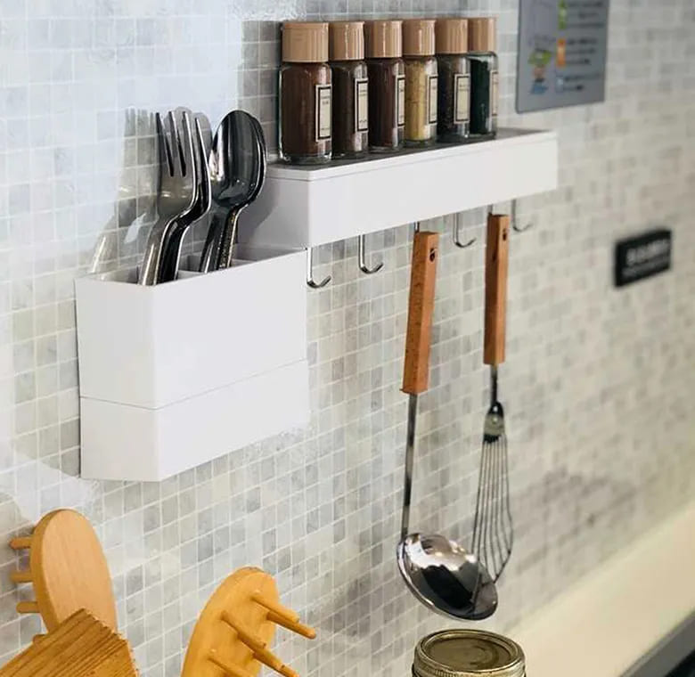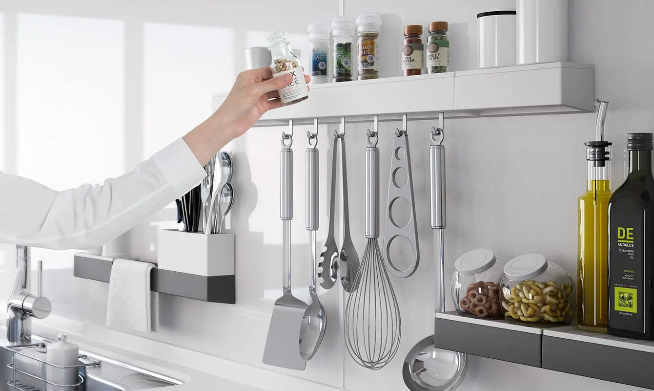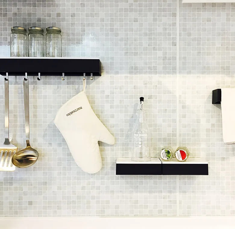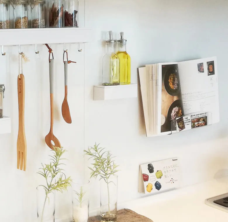 高品位琺瑯的基礎為金属,因而可粘附磁貼。因此,可在便於自己使用的位置,利用磁貼自由設置收納。鍋鏟放在這裡,調味料放在那裡,可自由自在地佈局,使用起來更加方便。